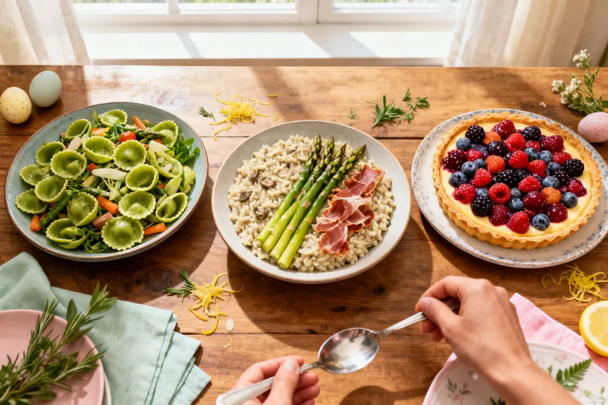Organizzare il pranzo di Pasqua può diventare una piccola sfida quando a tavola ci sono esigenze diverse. Eppure basta poco per trasformare tutto in un’occasione conviviale, inclusiva e piena di sapori freschi. Pasqua 2026 cade il 5 aprile, nel cuore della primavera. È il momento perfetto per creare menù leggeri, colorati e ricchi di primizie. Qui trovi tre proposte complete: una per chi è vegetariano, una senza glutine e una senza lattosio. Tutte pensate per offrire gusto e serenità, senza rinunce.